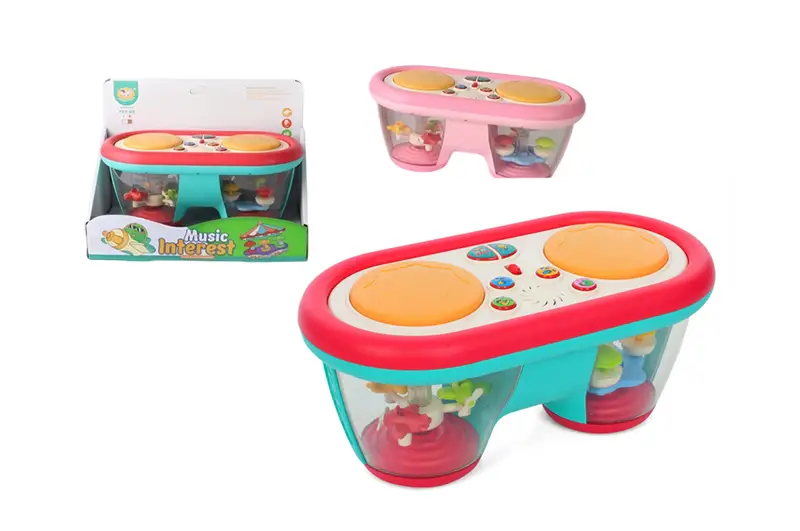 Барабан 855-161D інтерактивний на батарейках. музика. світло. 2 кольори. в коробці р. 24,2*13*18,5 см.