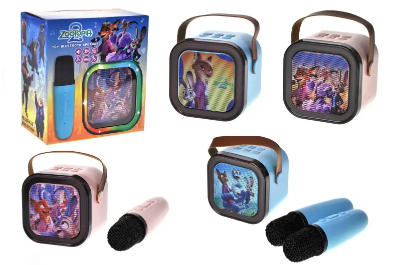 Караоке з 2 мікрофонами 188-K10A Зоотрополіс, блутуз колонка на акумуляторі,слот для карти пам'яті, р.13x7x14см