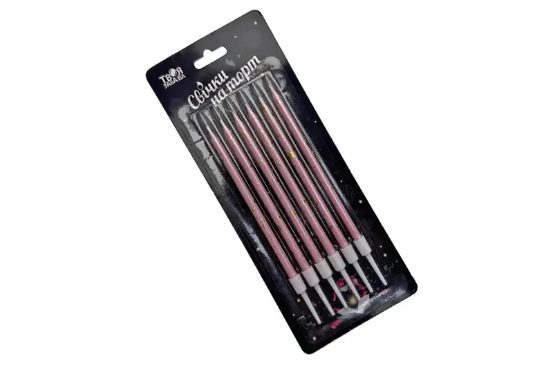 Свічки для торту рожеві з позолотою ТМ "Твоя забава" (6шт.)