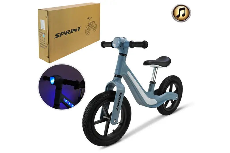 Велобіг BB2613 рама з нейлонового скловолокна, надувні колеса, світло, звук, сіро-блакитний у коробці 75x14x45 см
